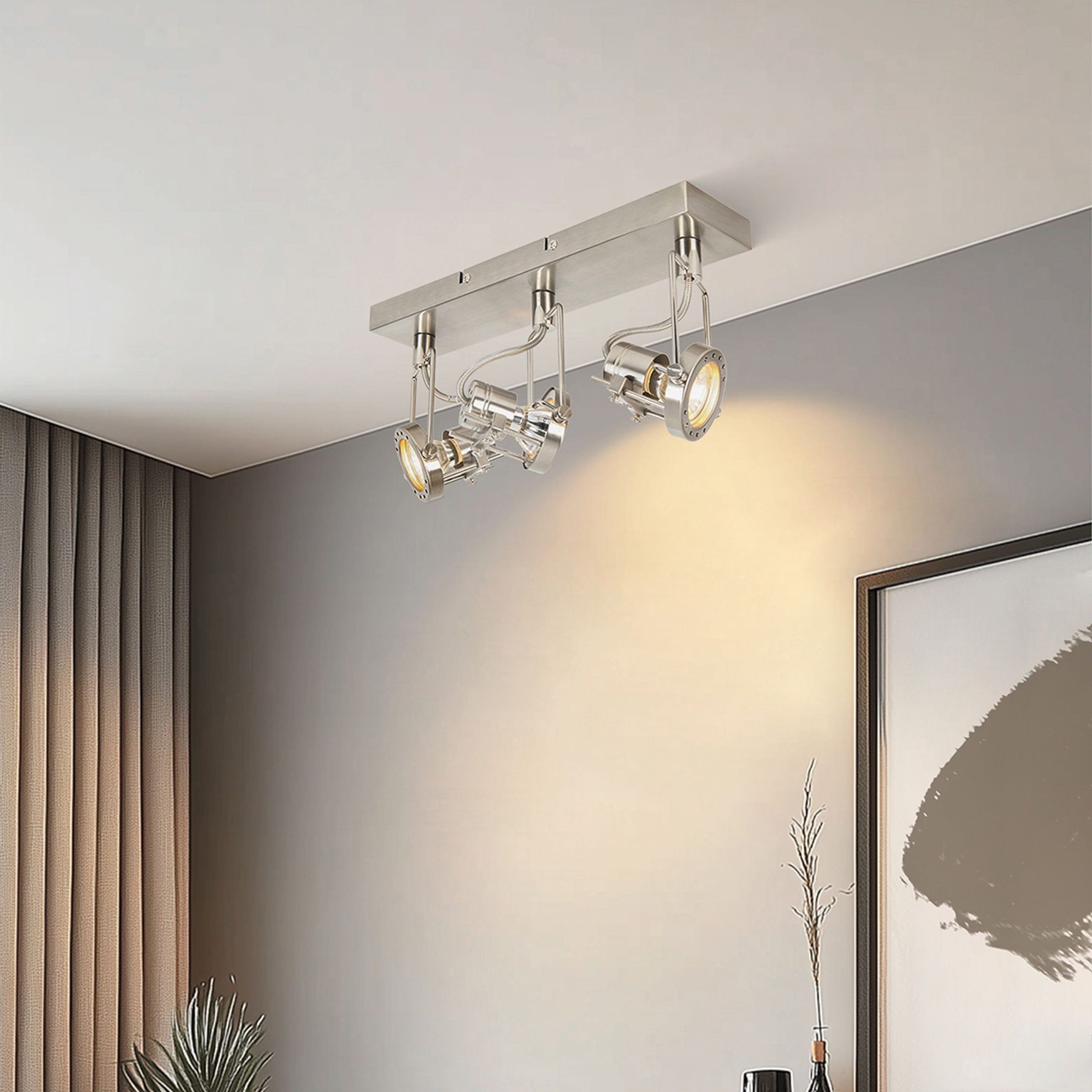 A very beautiful steel ceiling or wall spot that provides a pleasant and clear light distribution without sacrificing the atmosphere! This lamp is a real addition to your interior and the beautiful steel gives it a modern look while the design remains industrial! The lamp has three GU10 fittings and is supplied without light sources, so make sure you order these separately (max. 50W). The lamp is dimmable with an external dimmer (dimmer not included)! The lamp has a height of 17.5 cm. The mounting plate has a length of 36 cm and a width of 8 cm. Very nice in the kitchen or in the hallway! Buy several at the same time to be able to vary the light accent in your spaces!