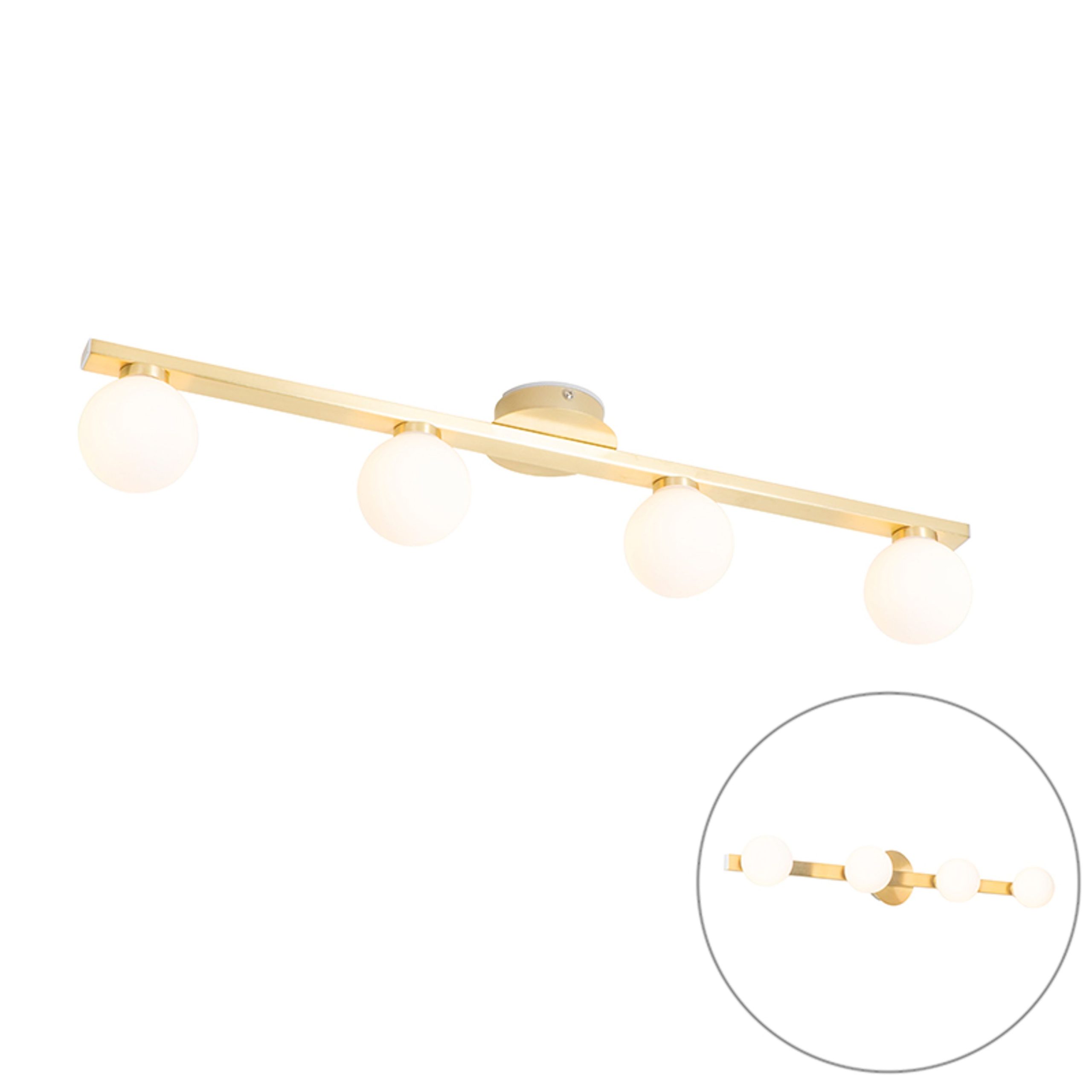 This large Ceiling Light will draw attention in your bathroom. Who ever said a bathroom has to be boring? Cederic is not only functional, but also very beautiful. Cederic is a gold-coloured, steel Ceiling Light with glass and has 4 light points. It has a height of 13 cm, a length of 68 cm and a width of 10 cm. The mounting plate has a diameter of 10 cm and a height of 3 cm. The light sources are exclusive, so be sure to order four light sources with a G9 fitting (max. 28 watts). Thanks to the high IP rating of IP44, they can withstand a splash of water and can therefore also be used in the bathroom. It is dimmable with an external dimmer (not included), so it is suitable for any purpose. Excluding cord and plug. Would you like to have this chic ceiling light illuminate your bathroom soon?
