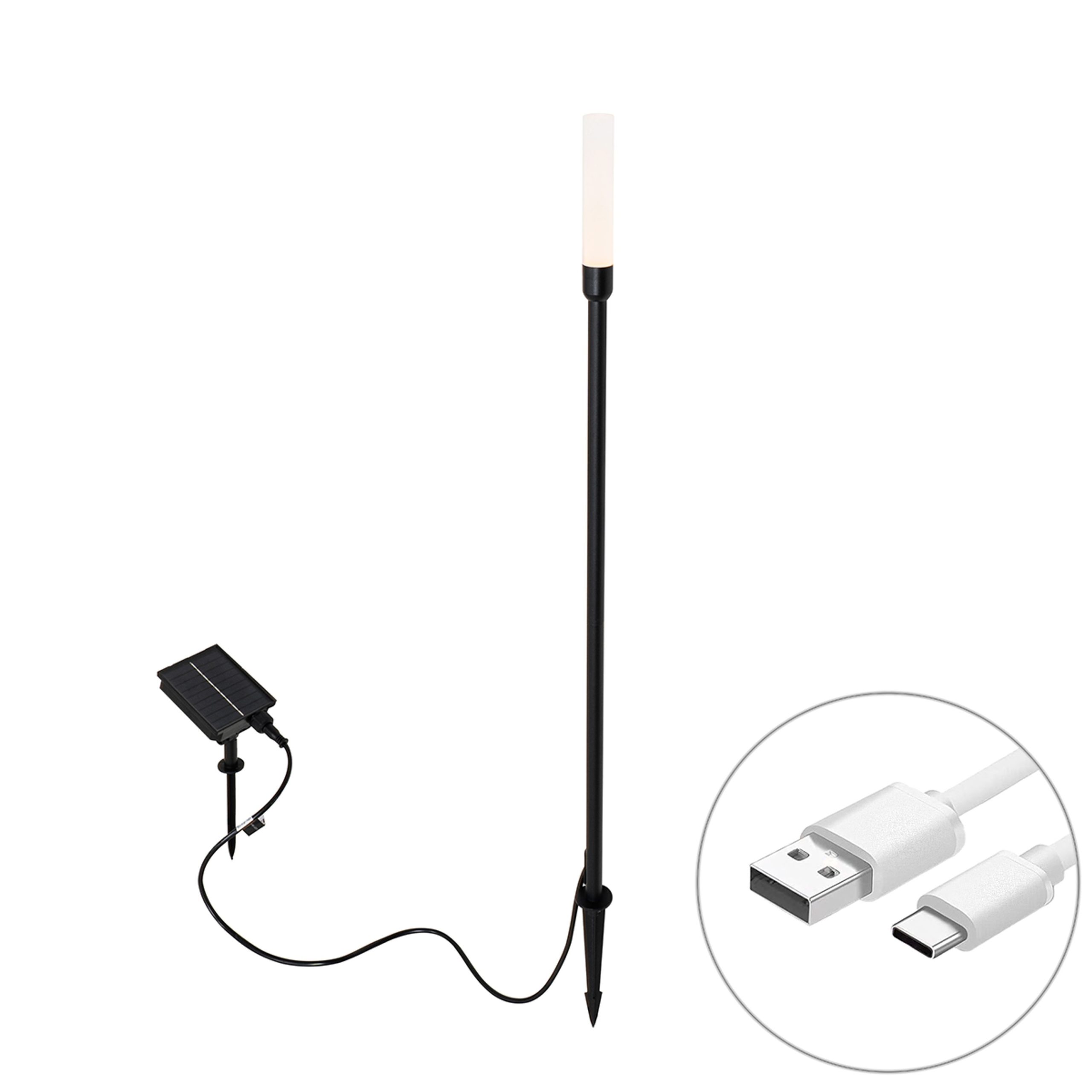 Outdoor lamp Barry is one of our bestsellers, and we understand why! Due to its steel construction in a black colour, it is a true design lamp. This lamp features integrated LED lighting. The outdoor lamp has a diameter of 2.5 cm and a height of 90.7 cm. The non-replaceable LED lighting consumes 1.2 watts and lasts an average of 20,000 hours. The lamp is rechargeable with a USB-C cable or via the included solar panel. Barry has a high IP rating of IP65. This makes it suitable for outdoors and can definitely withstand a heavy downpour! The lamp has a light output of 22 lumens, with the button on the back you can dim the light or set a timer. Enjoy sitting outside with Barry: with this outdoor lamp you almost won’t want to go inside.