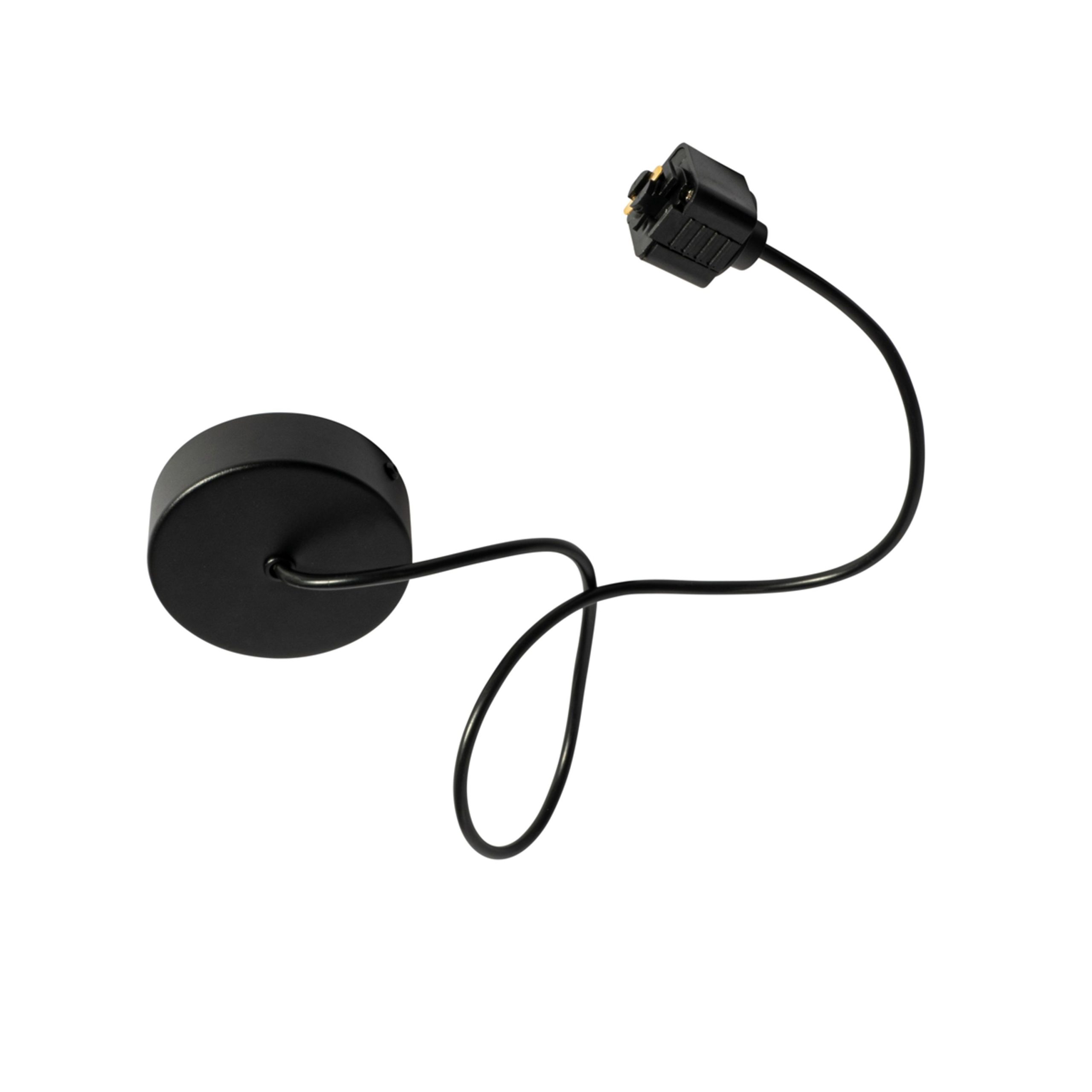 The power supply with round mounting plate for 1-phase track in black is the ideal solution for easily connecting your power supply to a track system. With its sleek and minimalist design, this adapter fits effortlessly into modern interiors. The round mounting plate made of steel and plastic ensures a sturdy and neat finish. Thanks to the 100 cm long cable, you can hang your power supply at the desired height, perfect for rooms such as the living room, kitchen or dining room. Combine this adapter with your lighting system and create a stylish and flexible lighting solution.