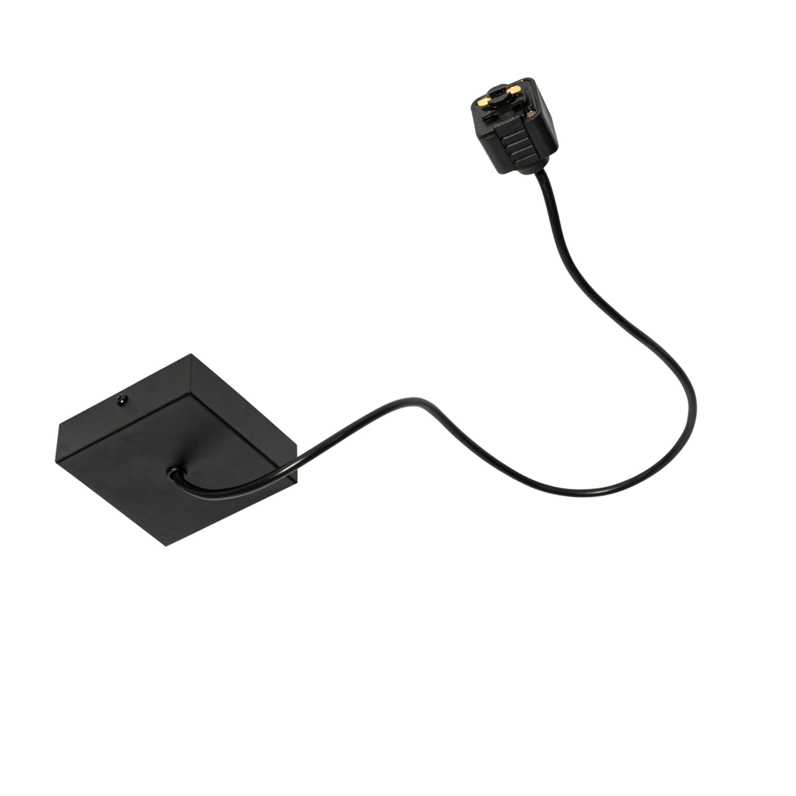 This power supply with a square mounting plate for a 1-phase track in black is a stylish and practical way to add power to your track system. With its modern square design made of steel and plastic, it fits perfectly into any contemporary interior. The sturdy mounting plate ensures a neat finish and reliable installation. Thanks to the 100cm long cable, you can easily hang your power supply at the desired height, ideal for rooms such as the living room, kitchen or dining room. Combine this adapter and enjoy a flexible and sleek lighting solution.