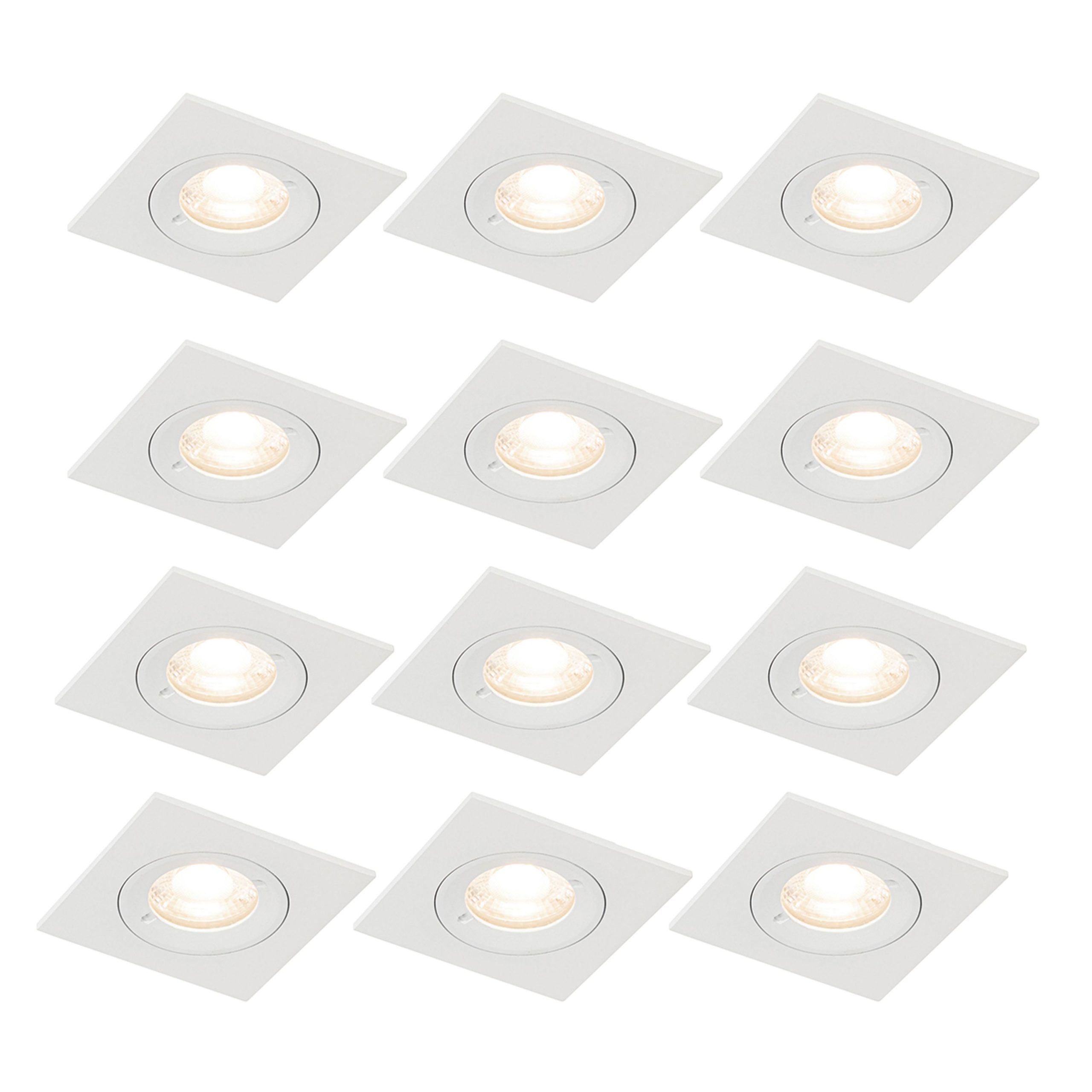Create a modern and sleek look with the Xena recessed spotlights! This set of 12 white, square spotlights features GU10 fittings and offers stylish lighting for any room. With an IP44 rating, these spotlights are splash-proof, making them perfect for use in damp areas such as bathrooms or kitchens. The compact 50mm spotlights provide bright and focused light, ideal for creating a specific atmosphere or highlighting certain elements in your interior. Add a touch of elegance and functionality to your home with the versatile Xena recessed spotlights!