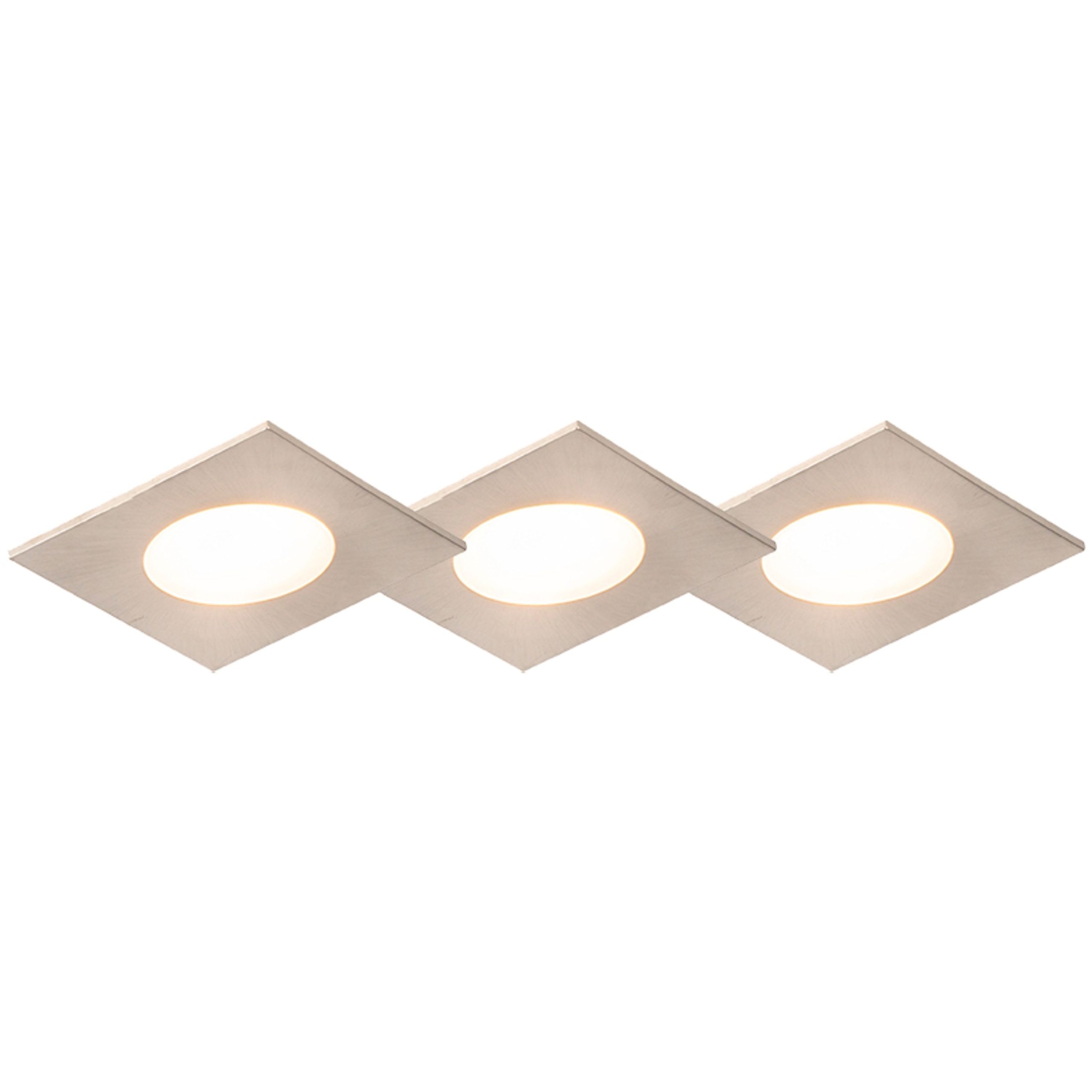 Set of 3 Recessed Square Steel Spotlights Incl. LED IP65 – Simply