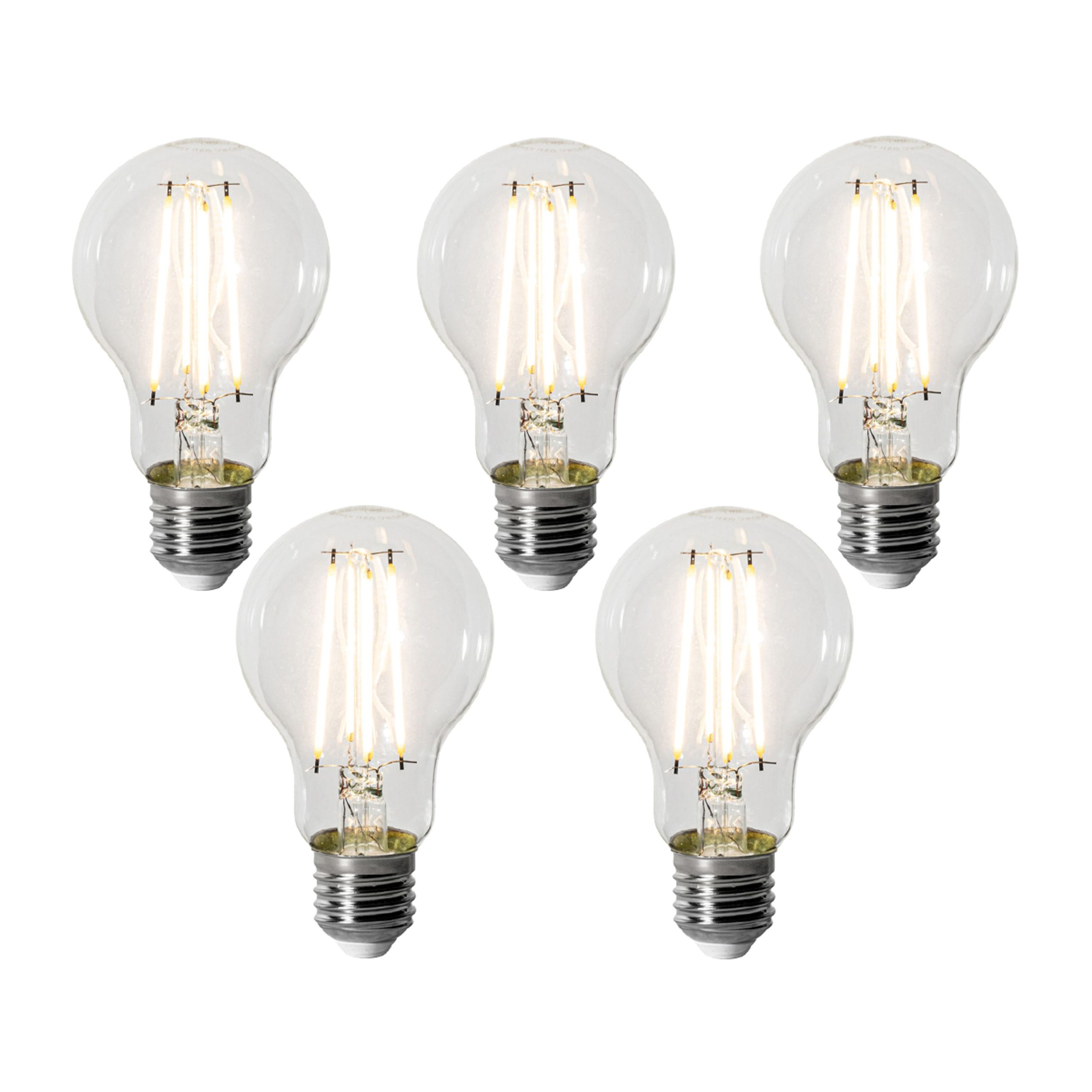 Give your interior a bright upgrade with this set of five E27 LED bulbs in the classic A60 shape. These bulbs combine a powerful light output of 900 lumens with a warm colour temperature of 3000K – perfect for those who love bright light without sacrificing atmosphere.