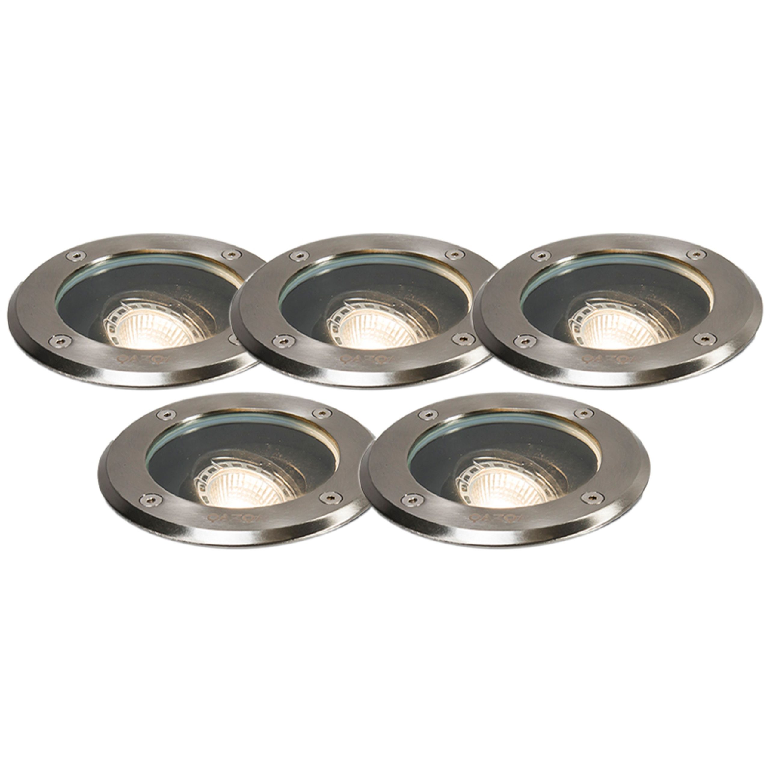 Beautiful ground spotlight of good quality with a heavy stainless steel cover. This ground spotlight is equipped with a tilting inside, so the light can be directed from the ground. The lamp is dimmable with an external dimmer (dimmer not included). The lamp has a diameter of 13 cm. The installation dimensions of this spotlight: a diameter of 12.6 cm and a depth of 14.5 cm. The spotlight comes with a cable of approx. 30 cm, which must be connected watertight to the ground cable. The spotlight is also drive-over (you can drive over it with a car). You can complete the lamp with a GU10 light source with a wattage of max. 50. This light source must be ordered separately. Delux is splash-proof, making it the perfect lamp for outdoors. Now even more affordable as a set of 5!