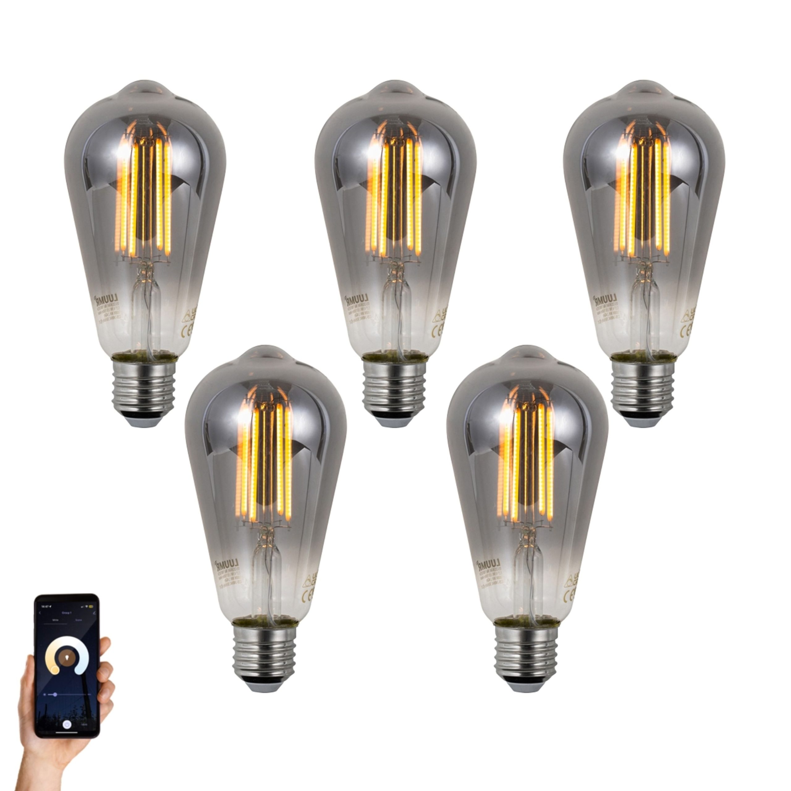 Bring a touch of sophistication to your home with the Smart E27 Dimmable LED Bulbs ST64 Smoke. These bulbs combine a stylish smoked-glass finish with the latest smart technology, allowing you to transform any room into a cozy haven. With a power of 4.9W and a light output of 150 lumens, these bulbs offer a soft, warm glow that is perfect for relaxation and conviviality. Thanks to the smart dimming function, you can easily adjust the brightness to suit any situation, whether you’re spending a quiet evening at home or hosting an intimate gathering. The warm color temperature of 1800K adds a touch of elegance and mystery to your interior, while the energy-efficient LED technology ensures a long lifespan and lower energy costs. Don’t wait any longer and give your home the upgrade it deserves with the Smart E27 Dimmable LED Bulbs ST64 Smoke. Order now and experience the perfect combination of style and functionality!