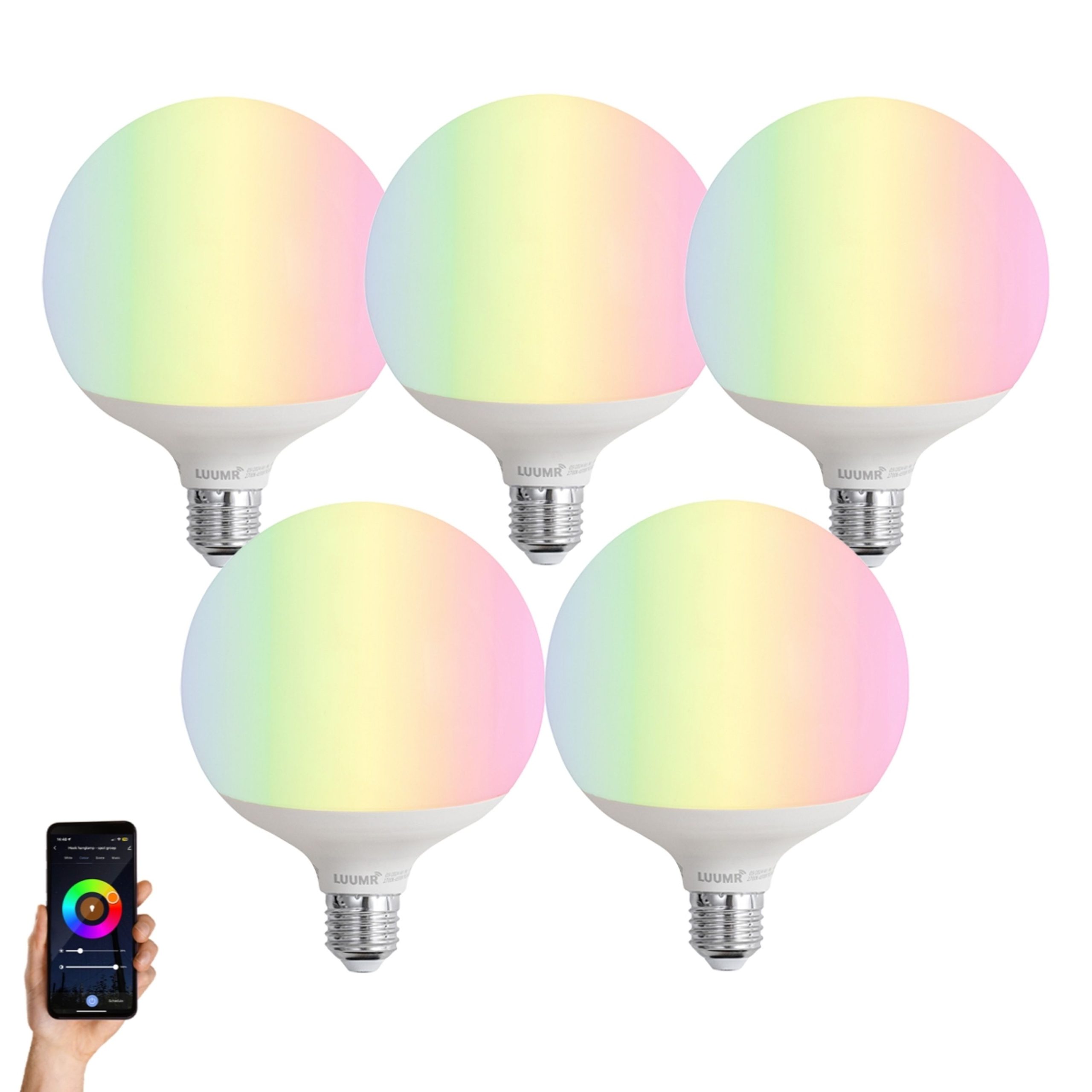 Create a new atmosphere every day with this set of 5 smart E27 LED bulbs G120! These large, matte light bulbs are not only an eye-catcher in your interior, but also a smart addition to your lighting. Thanks to the RGBW technology, you can choose from millions of colors and adjustable white light from warm (2700K) to cool (6500K) – perfect for any mood or activity.