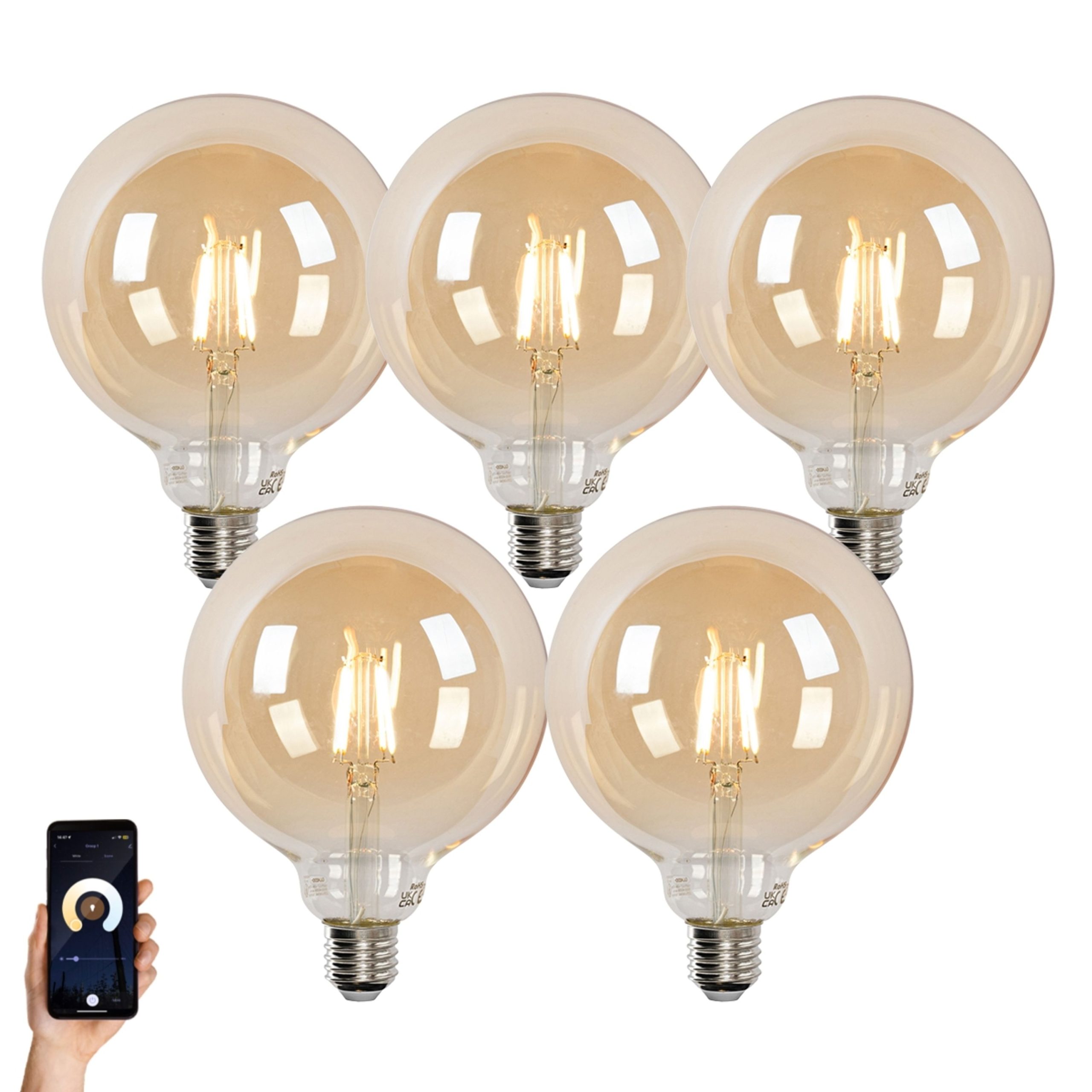 Need some more light sources? Look no further than these E27 light bulbs! As the name suggests, these goldline light sources have a unique look thanks to the gold glass. This gives a beautiful, warm effect! You won’t easily miss these light sources: they have a diameter of 12.5 cm and a height of 17.2 cm. The light sources consume 4.9 watts and produce 470 lumens. These light sources have an average lifespan of 15,000 hours. Add more atmosphere to your space thanks to the fact that the light sources are dimmable. These light sources are smart. This means that they can be remotely controlled with your smartphone or smart home system. Don’t sit in the dark any longer and choose these E27 light sources. Manage and personalize your lighting with ease using LUUMR. This smart app allows you to control your smart light bulbs with a few taps. Create the perfect atmosphere, manage energy consumption, and set personalized scenes, all from one user-friendly app. LUUMR puts smart lighting within easy reach. Try it today and experience the ultimate convenience of smart lighting technology. Download LUUMR in the app store.