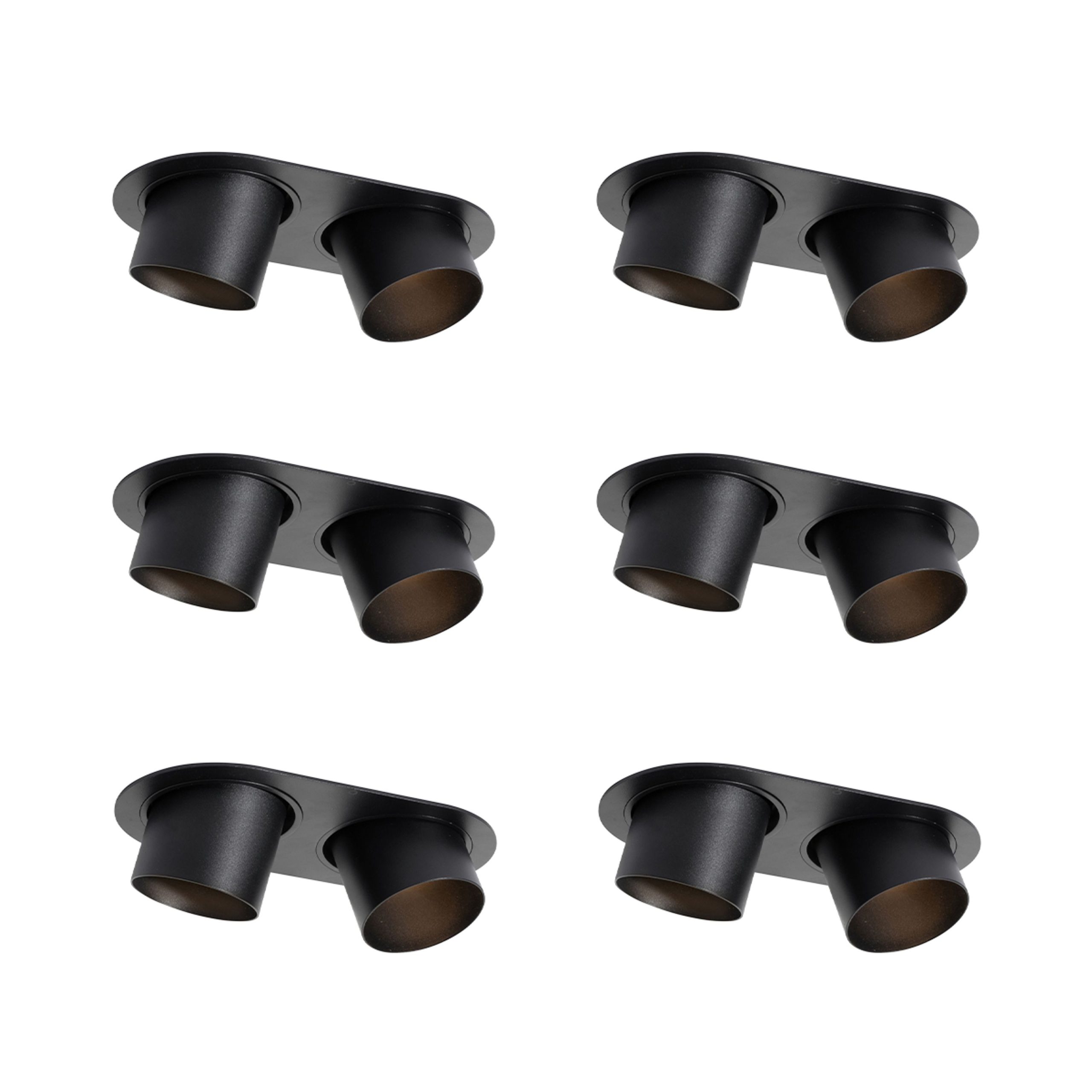 This set of six black recessed spotlights with a sleek 2-light design is the perfect choice for those who love modern elegance with a functional twist. The matte finish and trimless design ensure seamless integration into your ceiling, making the light appear to come from the space itself. Perfect for those who love a minimalist look with maximum impact.
