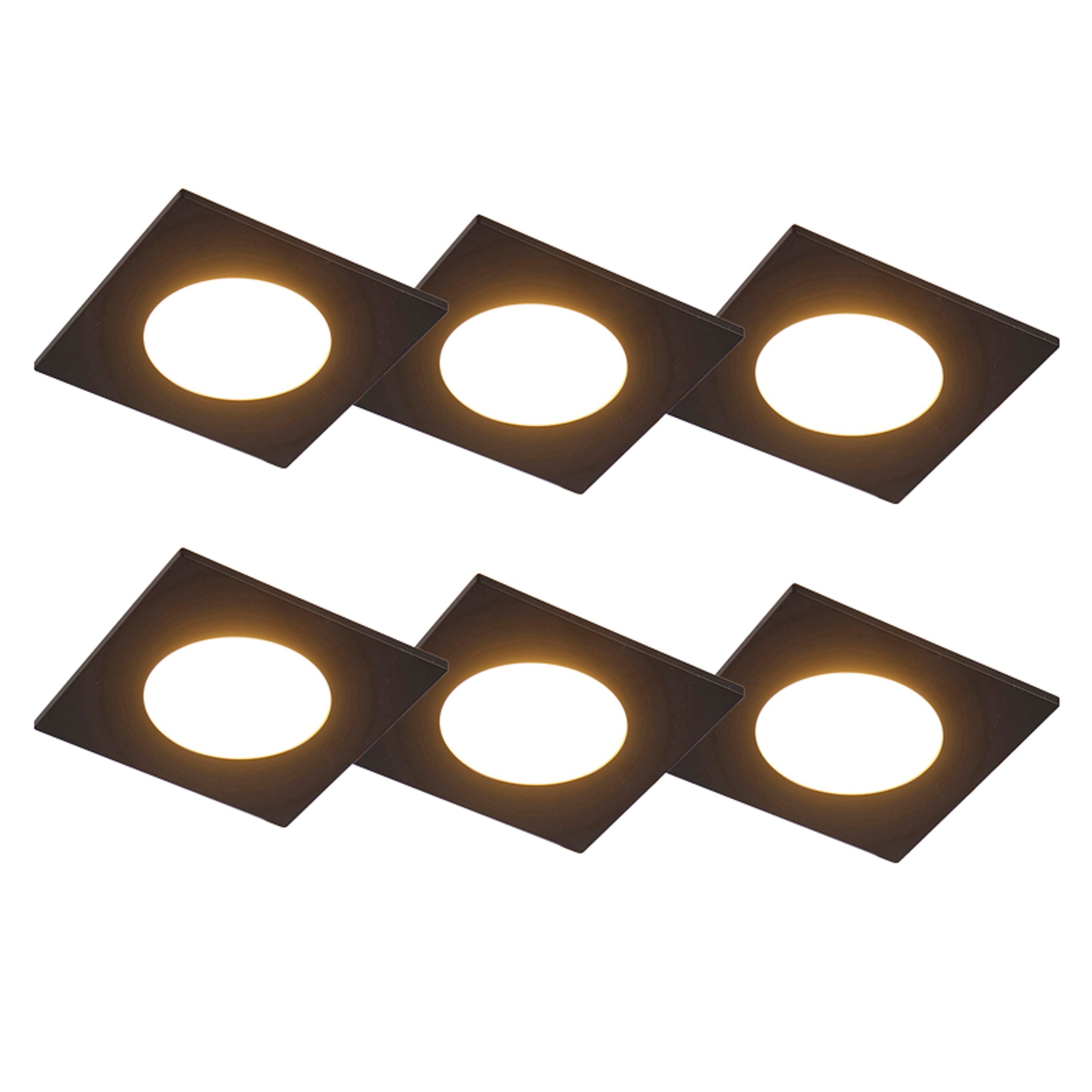 These modern recessed spotlights look great in a sleek interior. If you’re looking for square, black recessed spotlights, look no further. The Simply recessed spotlights come in a set of 6 and are made of black plastic. The spotlights are 9 cm long, 9 cm wide and 4.8 cm high. The installation dimensions have a diameter of 7 cm and a depth of 7 cm. You will receive them including (non-replaceable) LED light source. One spotlight provides 350 lumens of light. They are dimmable in 3 steps, so you can choose how bright you want the light to be. From more atmospheric lighting to functional light. The light sources are 2,700 Kelvin, which provides extra warm white light. With an IP rating of IP65, they are splashproof and can withstand water jets. These black spotlights give a modern touch to the room!