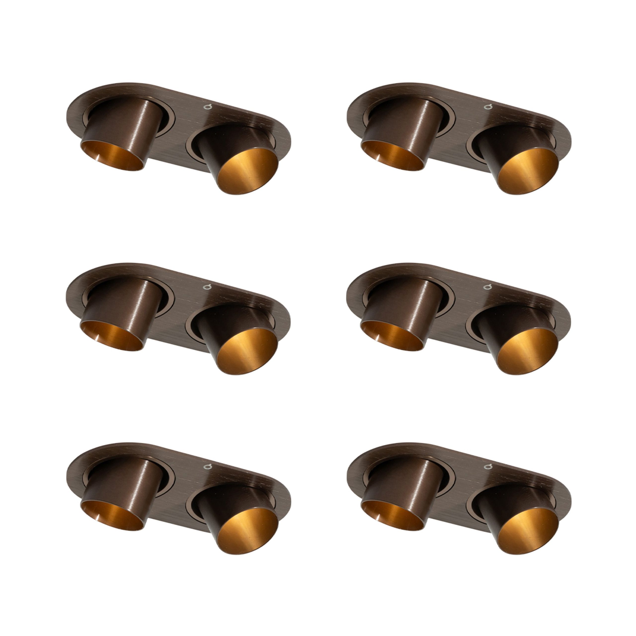 This set of six recessed spotlights in a rich dark bronze hue brings a warm, luxurious atmosphere to your interior. The compact 2-light design with 35mm GU10 fittings ensures a subtle, modern look that fits perfectly in both classic and contemporary spaces. The colour adds a touch of elegance without being overpowering – ideal for those who love refined details.