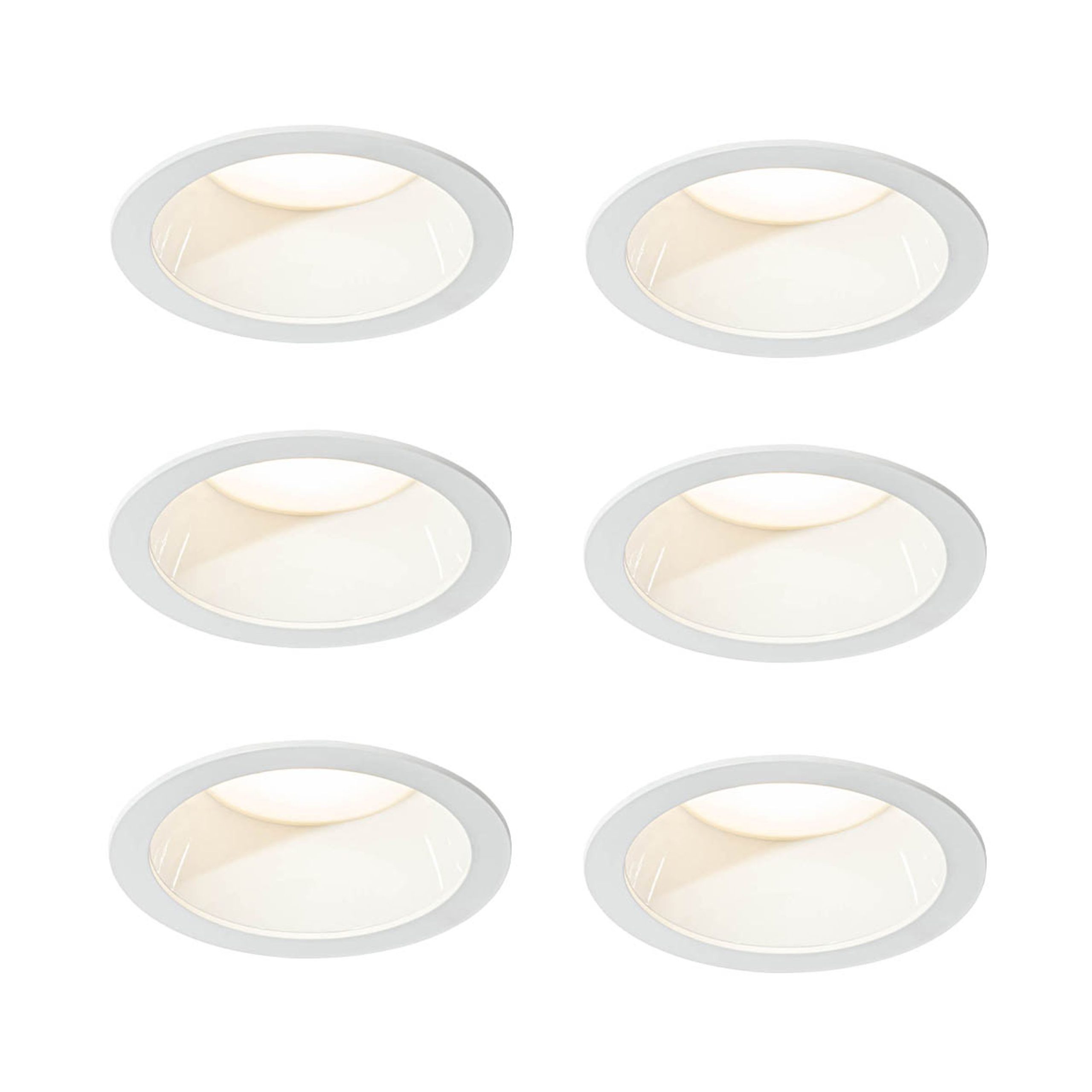 This set of six white recessed spotlights from the Elias series combines sleek design with smart functionality. The minimalist round shape fits effortlessly into any interior, while the integrated LED lighting provides a flexible lighting experience. With an adjustable colour temperature from 3000K to 5000K, you can choose the atmosphere yourself: from warm and cosy to fresh and functional.