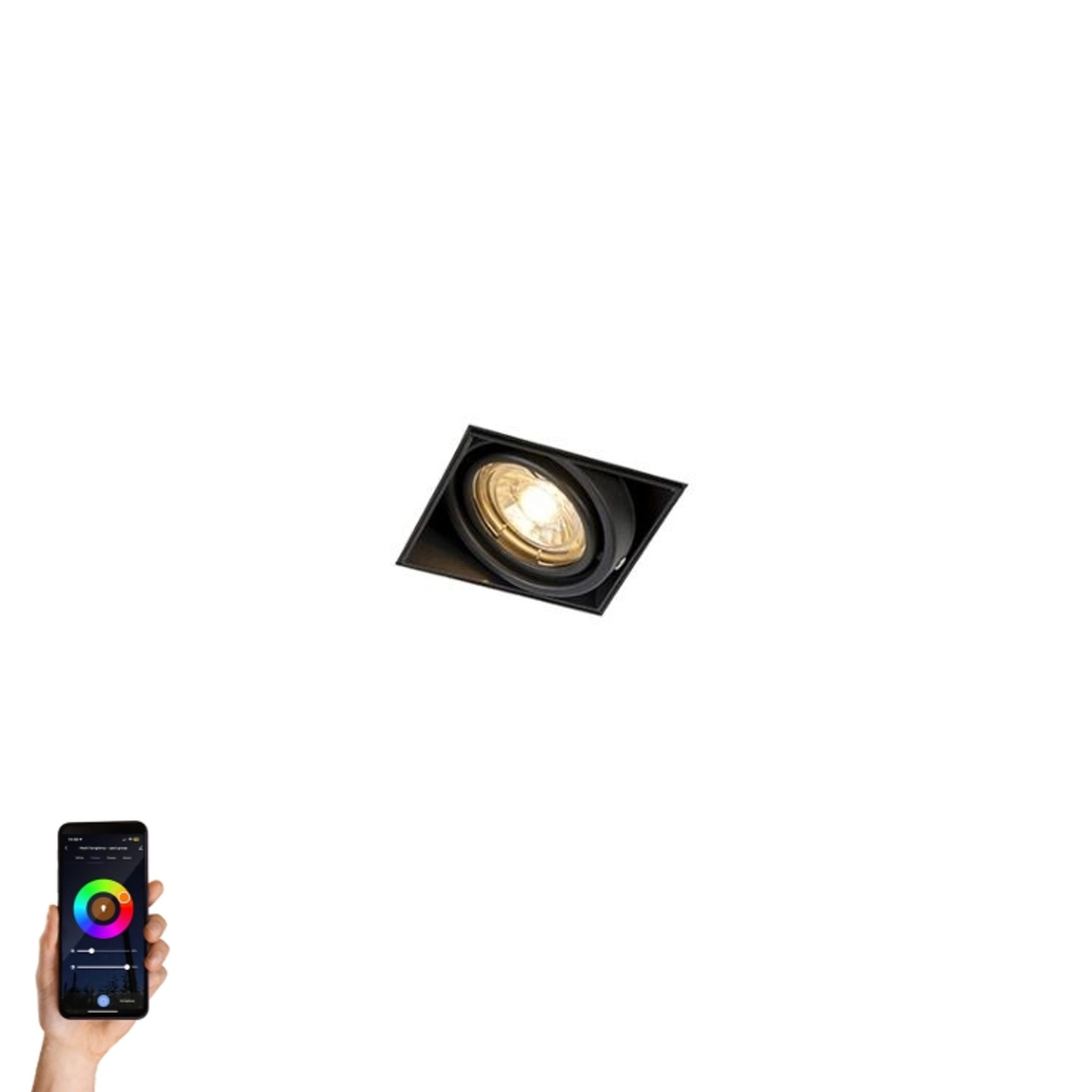 This Oneon 1 Trimless is the perfect recessed spotlight. This fitting is trimless, which means that there is no outer edge around the fitting and therefore you can perfectly integrate this fitting flush with your ceiling. This makes the ceiling appear to continue and the lighting becomes part of the whole. The spotlight is 8.8 cm long and 8.8 cm wide. You mount the frame on the plasterboard. It is adjustable and can be pre-set to the correct thickness of the plaster layer so that the edge is flush with the plasterwork. The frame can also be mounted up to 3 cm outside the ceiling. Please note! The height of the plaster-in frame is 10 cm. Once this is done, you can easily click the fitting into place and the included WiFi light sources (GU10 max. 50W). The spotlight is tiltable, so you can determine where the light shines. The Oneon 1 recessed spotlights are easy to operate. You can connect the light source to WiFi via an app on your smartphone, via Google Home or Alexa. This allows you to control the light yourself. If you want to create a cosy atmosphere in the evening, you can dim these spotlights with the app or set a time when the lamp turns on or off. This recessed spotlight is finished in black, which provides a nice contrast between the ceiling and the lighting. This Oneon Trimless recessed spotlight is a must-have for anyone who loves a sleek ceiling in their home.