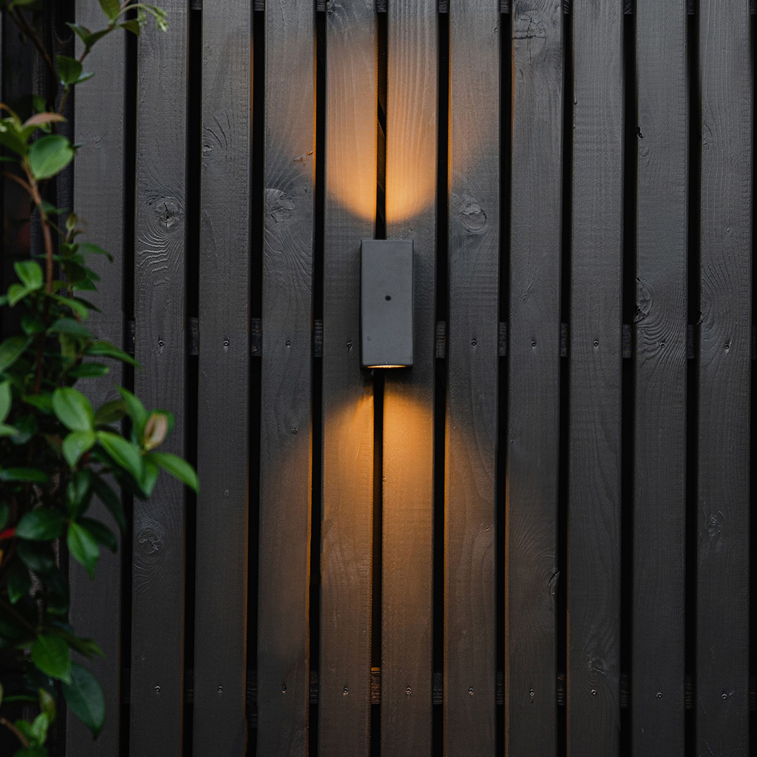 For a stylish outdoor environment, you need Baleno II. This Wall Light provides light from both the top and bottom, creating a beautiful light effect on the wall. Baleno II is made of aluminium with glass and has an anthracite grey finish. It has a depth of 9.2 cm, a height of 21 cm and a length of 8.3 cm. The mounting plate has a depth of 2 cm, a height of 21 cm and a length of 8.3 cm. You can complete the Wall Light with 2 AR70 light sources, each with a GU10 fitting (max. 35W). Make sure you order these separately. Baleno II has a light-dark sensor, which detects when it gets dark and automatically turns on the lighting. When it gets light again, the lighting automatically turns off. The Wall Light has an IP rating of IP44 and is therefore splash-proof. The lamp is dimmable with an external dimmer, which is not included. Perfect for next to the front door or on the garden shed. Make your outdoor environment safe with the modern Baleno II Wall Light.
